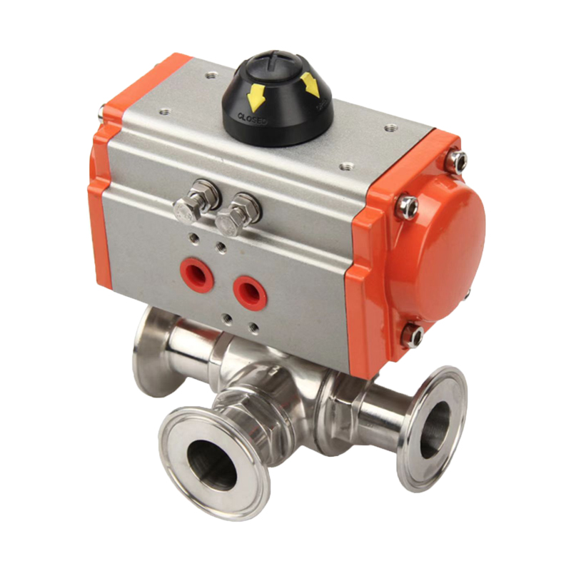 快裝三通球閥也叫衛生級卡箍三通球閥,閥芯有三通L型和三通T型之分,其中三通L型球閥多用于介質流向的切換流向使用,三通T型球閥可用于調節分配個管道流量大小,也可以用于2條管路合流為1路使用。閥門多和氣動執行器組成氣動三通球閥,或和電動執行器組成電動三通球閥,可以靈活與中控系統集成,做自動化控制流量大小來使用。